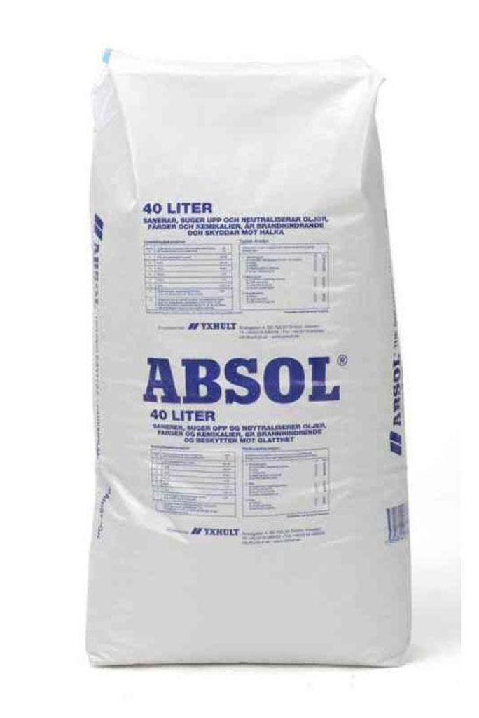 Absol 40 är ett finkornigt absorberingsgranulat, som snabbt och effektivt absorberar, sanerar och neutraliserar farliga vätskor. Dessutom fungerar det som ett brandbekämpnings- och halkskyddsmedel, vilket gör det till ett oumbärligt verktyg i varje situation.