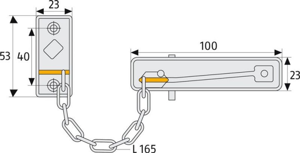Abus Dörrkedja SK 69, Svetsad stålkedja av enkel modell. Avhakningsspärr, inåtgående dörr.