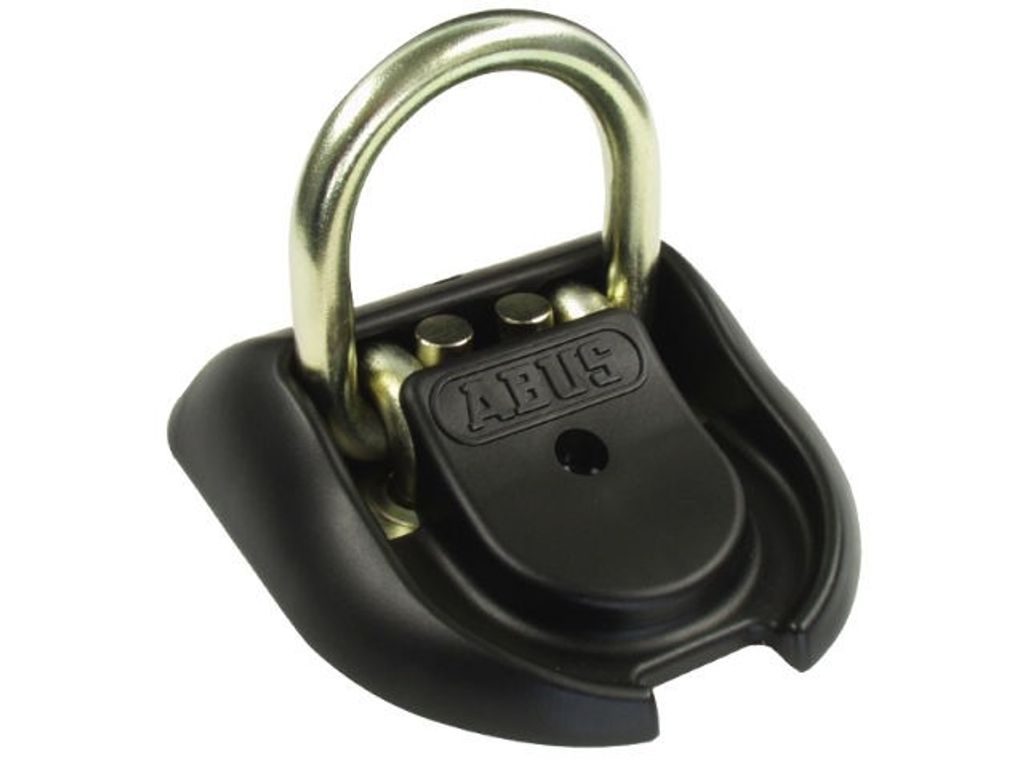 ABUS WBA 100, Mycket kraftig ögla/ankare för permanent fastsättning i golv eller vägg. 16 mm seghärdad bygel av specialstål, gulkromaterad för bästa rostskydd. Kraftig skyddskåpa av plast, kan köras över. Bygeln kan fällas ner när den inte används. Fastsättningsmaterial med expanderbultar för betong medföljer. Godkänd i Klass 3. Lämpligt till bryggan, fastlåsning av maskiner eller i garaget.