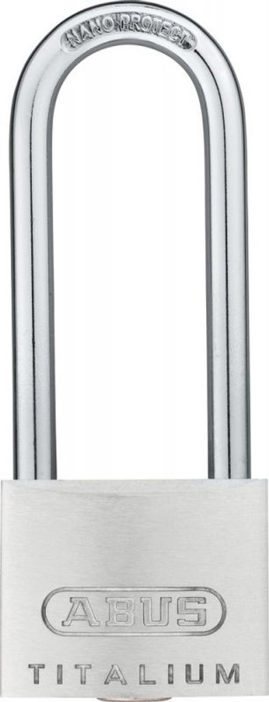Abus Hänglås 64 Titalium, Massivt låshus av Titalium, speciallegerat aluminium, hög säkerhet och låg vikt. Specialstålbygel med NANO-skyddsbeläggning för maximalt skydd mot korrosion. Dubbelreglad i alla storlekar från 30 mm. Precisionsstiftscylinder med förkromad cylinderkärna och paracentrisk nyckelprofil för ökat skydd mot dyrkning. Alla förekommande storlekar, lämpligt för de flesta applikationer för skydd av medel höga värden eller vid stöldrisk som är högre än genomsnittet