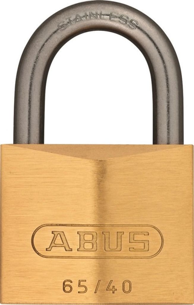 Abus Hänglås 65/40 IB, klass 1, Låshus av massiv mässing. Dubbelreglad bygel av rostfritt syrafast stål.