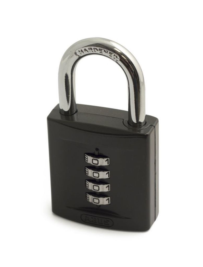 Abus Kombinationshänglås 158, Svartlackerad med härdad bygel.158/50 har 4 sifferhjul med 10.000 kombinationer.