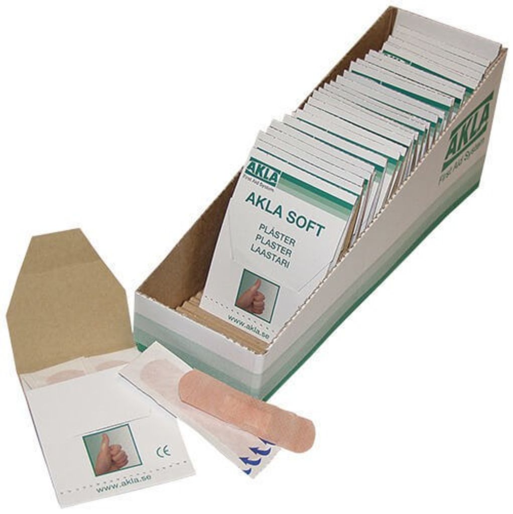 Plåsterplån med 9 AKLA Soft plåster i olika storlekar i samma material som ovan packade i ett fodral som enkelt kan bäras i fickan.