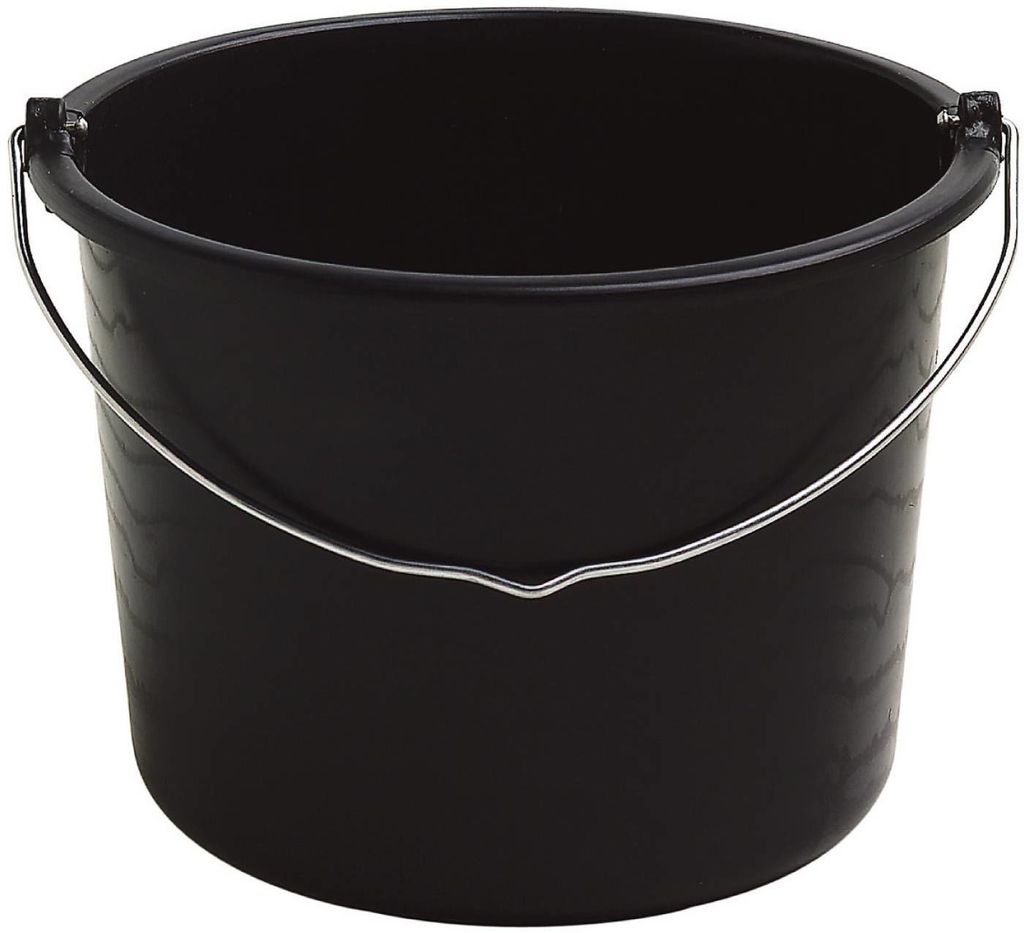 Kraftig allhink av svart återvänd plast. Med metallgrep. Måttgraderad.