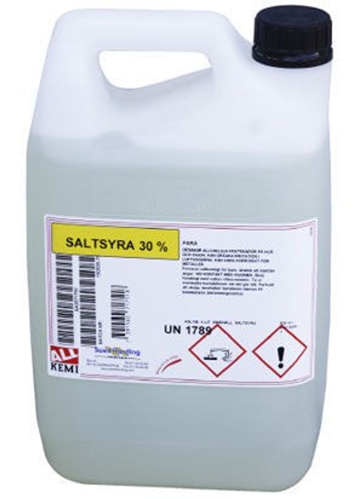 Allkemi 30 % teknisk saltsyra är en kraftfull lösning designad för att effektivt avlägsna oönskade kalkutfällningar samt kalk- och cementspill. Med en rekommenderad spädning på 1 del saltsyra till 10 delar vatten, denna produkt säkerställer grundlig rengöring för olika ytor. Använd alltid plastkärl för blandningen och tillsätt syran i vattnet, inte tvärtom. Produkten är klassad som frätande och skadlig, med en förpackningsstorlek på 5 liter. Obs! Produkten säljs endast i butik, och det är viktigt att läsa säkerhetsdatabladet före användning.