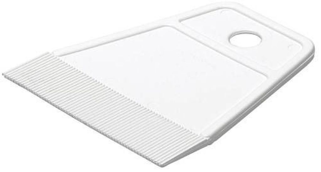 Plastverktyg för klistring av heltäckmattor och golvplattor, för uppsättning av väv och galon, kakelplattor m m. Fintandning.