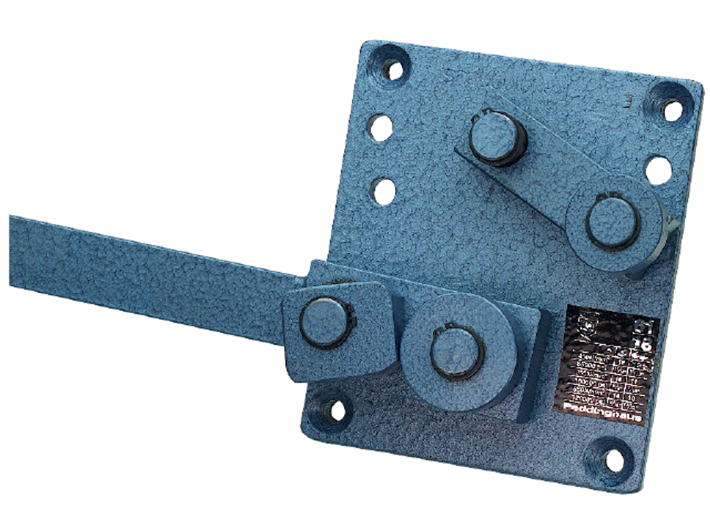 Peddinghaus Av stål. För såväl höger- som vänsterböjning och för bearbetning av upp till tre stål samtidigt. Hävarmen är försedd med en femkantig, vridbar böjplatta vilken möjliggör bockning av korta hakar och vinklar på såväl klent som grovt material. Stödbultarna är ställbara. Levereras som standard med runt böjblock. (På särskild beställning kan erhållas dels runda böjblock för större radier och dels ellipsformade för två olika böjradier.)