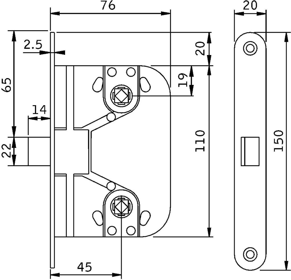 - Låset har en symmetrisk konstruktion för höger- och vänsterdörrar.