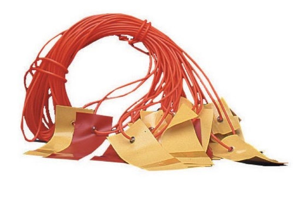 Fluorescerande röd lina med röda och gula reflexer. Längd 23 m.