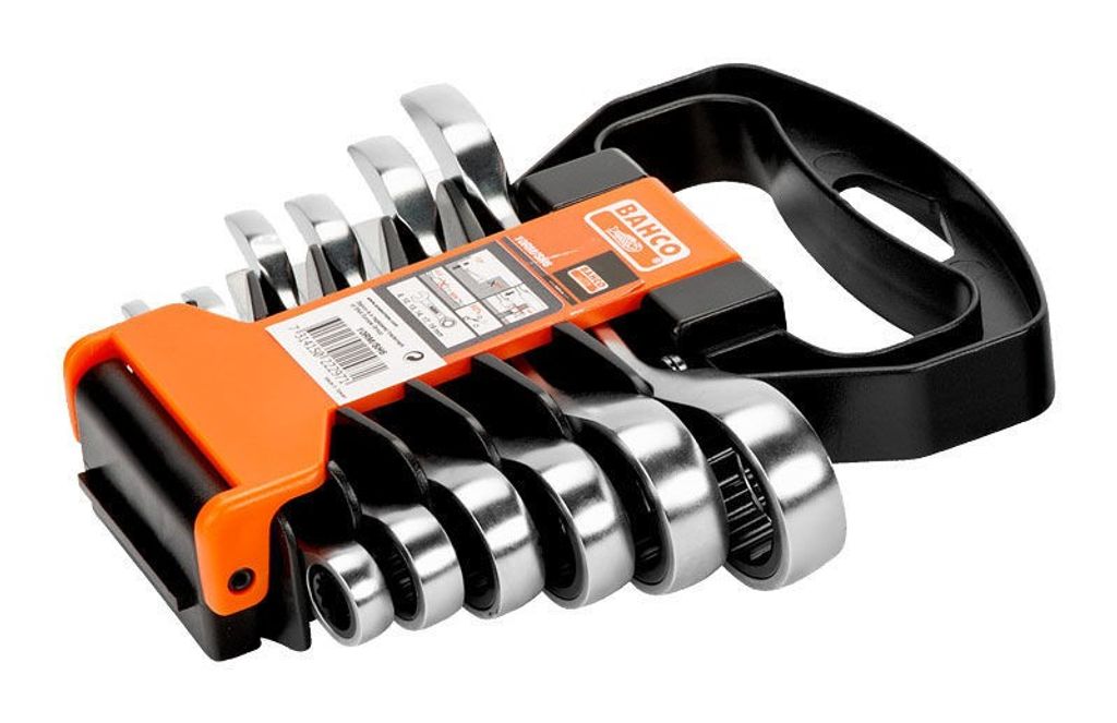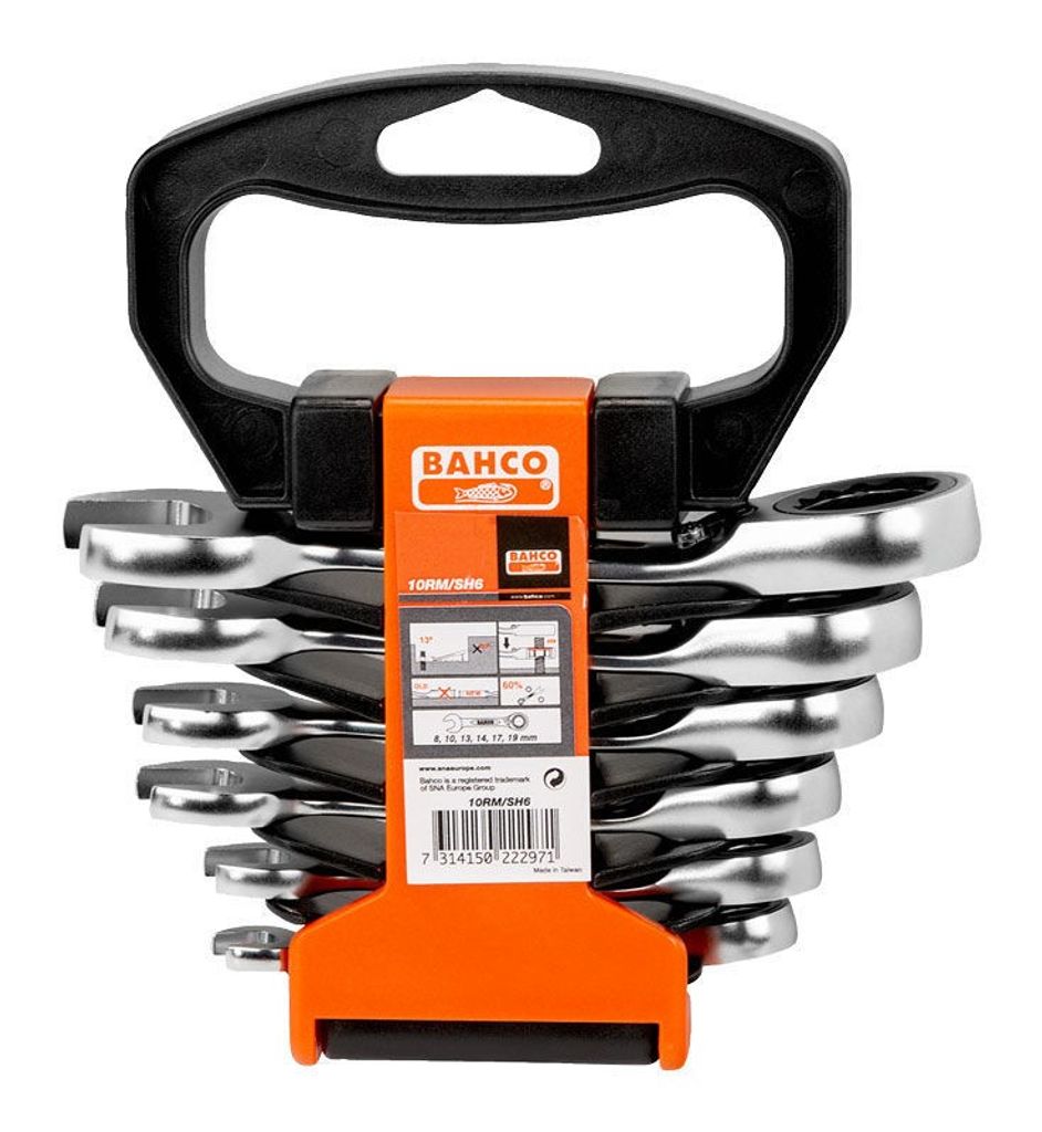 Bahco 10RM/SH6 spärrnyckelsats erbjuder professionella användare en kompakt och effektiv lösning för en mängd olika fastsättningsuppgifter. Med en samling av de mest användbara storlekarna, från 8 mm till 19 mm, täcker denna sats ett brett spektrum av behov inom både hantverk och industri.