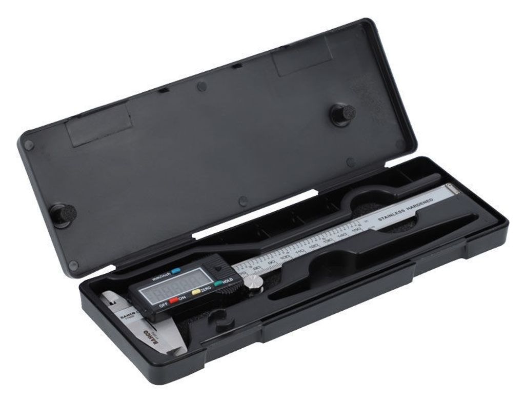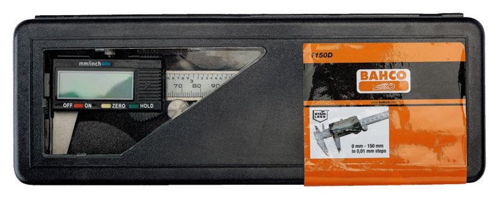 Bahco 1150D är ett digitalt skjutmått i rostfritt stål, utrustat med en LCD-skärm för enkel och precisionsmätning. Den mäter upp till 150 mm (6 tum) med en noggrannhet på 0,01 mm (0,0005 tum) och har en precision på ± 0,03 mm. Verktyget har funktioner som djupmätning, automatisk avstängning och levereras i en skyddande låda.