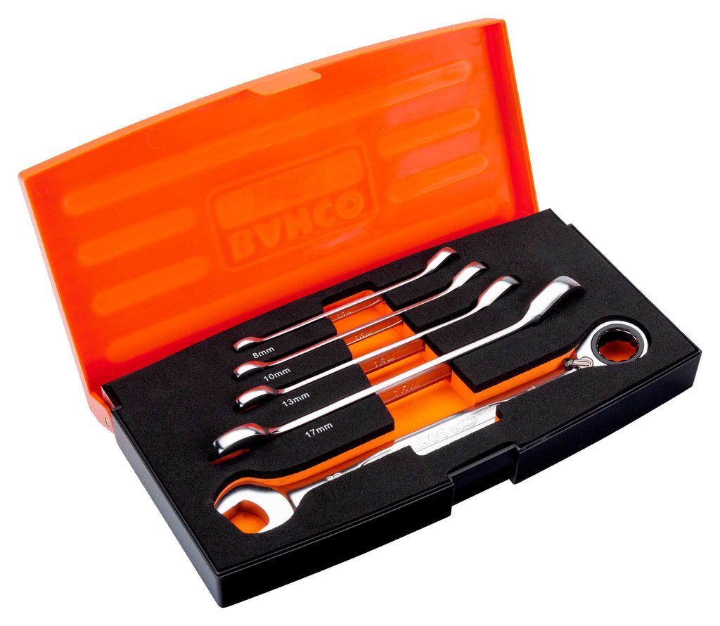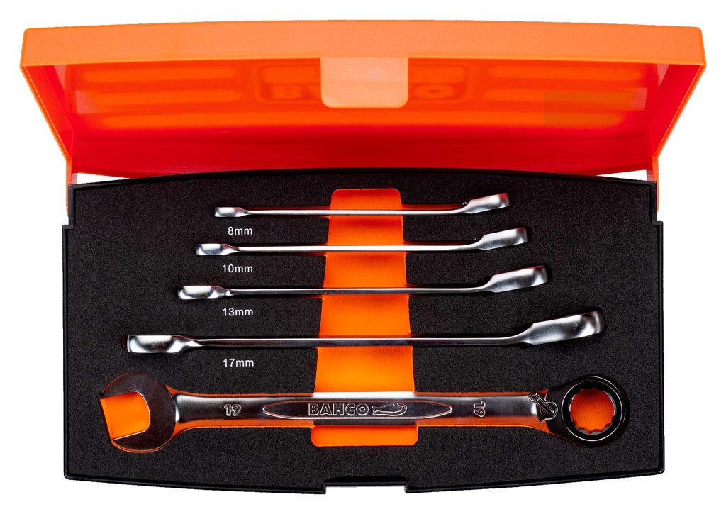 Bahco 1RM/S5 är en sats med metriska spärrkombinycklar 5 delar/plastlåda.