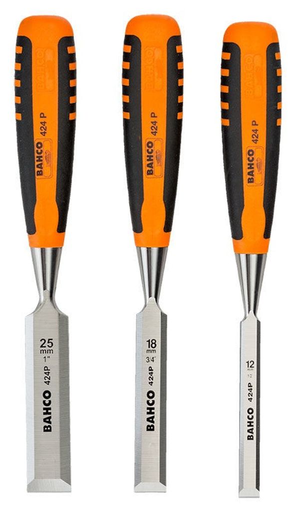 Bahco 424P-S3-EUR är en stämjärnssats med stämjärn av kvalitetsstål. Stämjärnssatsen innehåller stämjärnen 12m, 18mm & 25mm.