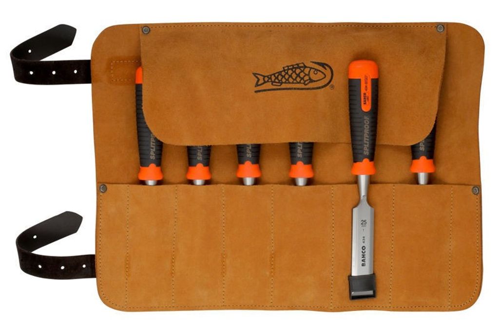 Satsen innehåller sex stämjärn i bredderna 6, 10, 12, 18, 25 och 32 mm och levereras i en praktisk och slitstark läderbindel för enkel förvaring och transport. Bahco 434 ERGO™-serien följer ISO 2729-standard och är idealisk för allt från detaljerat snickeriarbete till tunga byggprojekt.