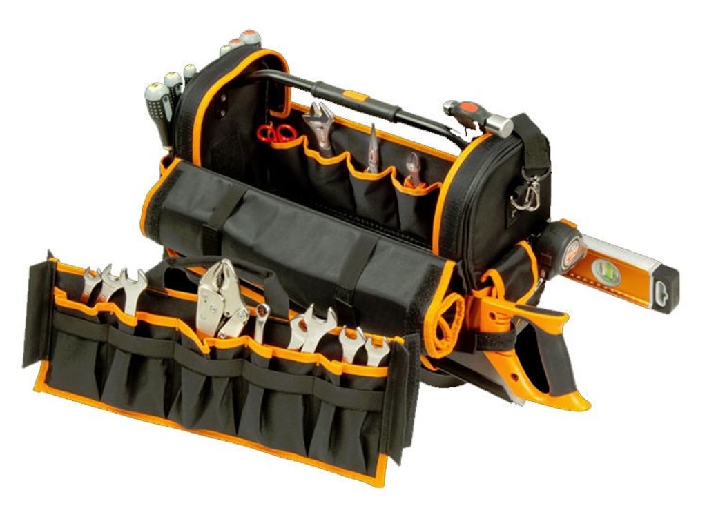 Smidig verktygsväska i textil med extra avtagbar verktygspanel.