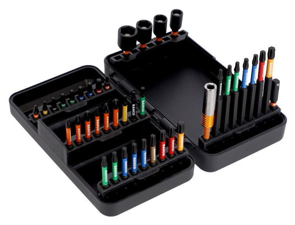 Bitsen är tillverkade av högkvalitativ stållegering och har en manganfosfaterad yta som förbättrar hållbarheten. Torsionszonen på bitsen absorberar vridmomentstoppar, vilket minskar slitaget och förlänger livslängden. Bitsen är färgmärkta för enkel identifiering av spetsstorlek, vilket gör det lättare att snabbt hitta rätt bit.