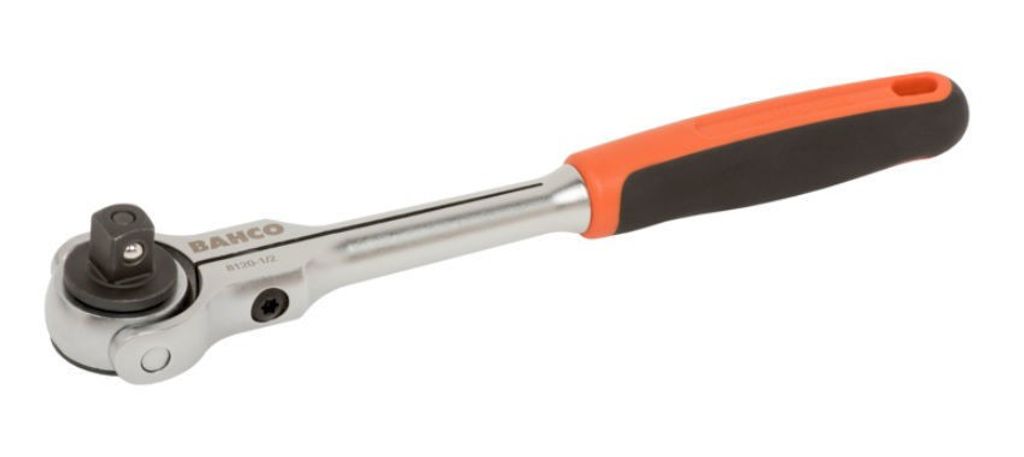 Bahco spärrhandtag 1/2" med vridbart huvud. 72 tänder och 5° omtagsvinkel. Av högkvalitativt stål.
