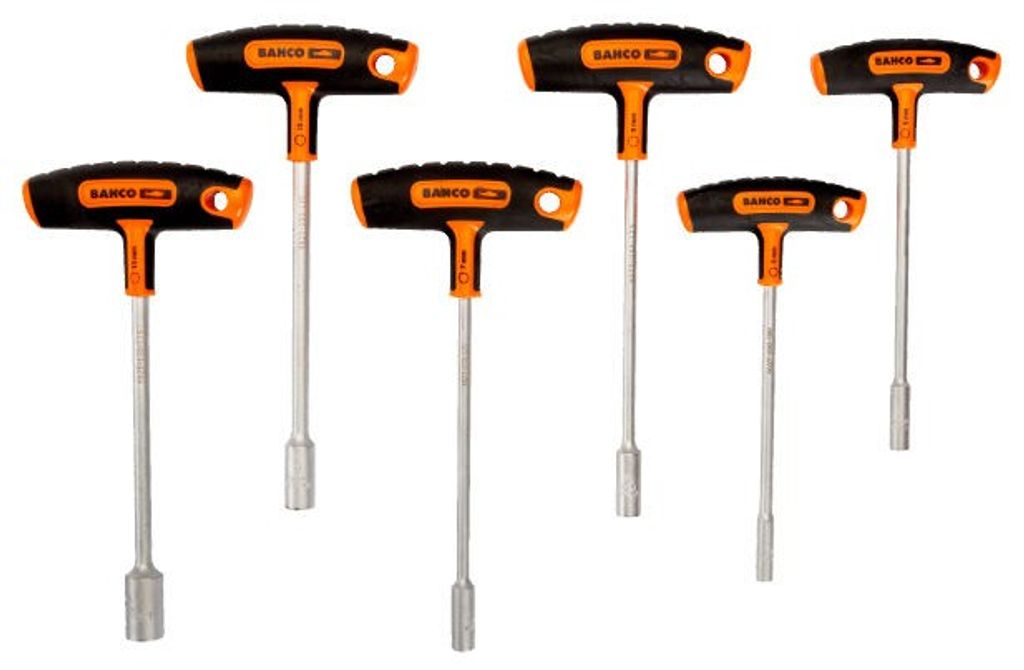 Bahco 903T-3 är en sats med hylsskruvmejsel med T-handtag för sexkantiga skruvar, bultar och muttrar, 6 delar