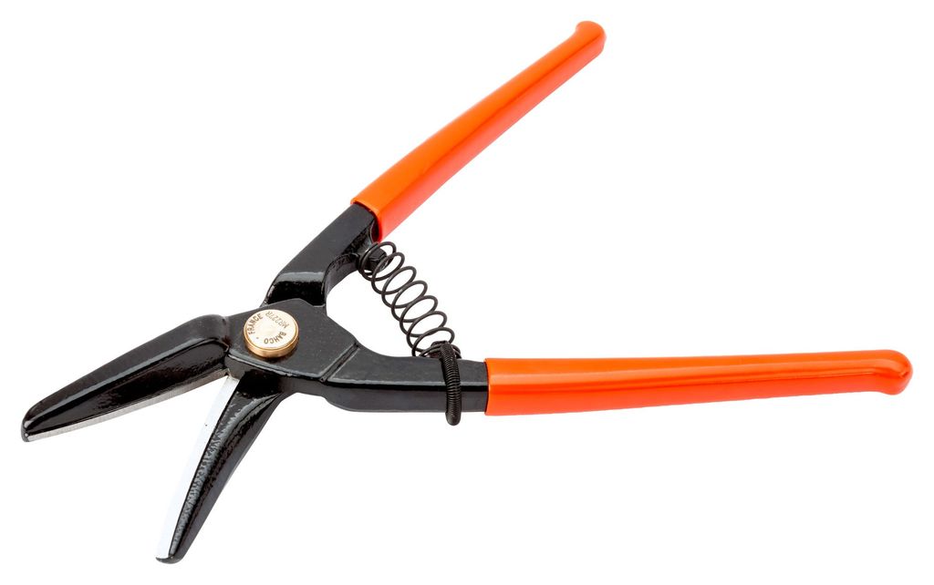 Bahco plåtsax höger- och rakklippande smala skär. Klippkapacitet: 0,6 mm (rostfritt stål), 1,2 mm (kallvalsat stål).