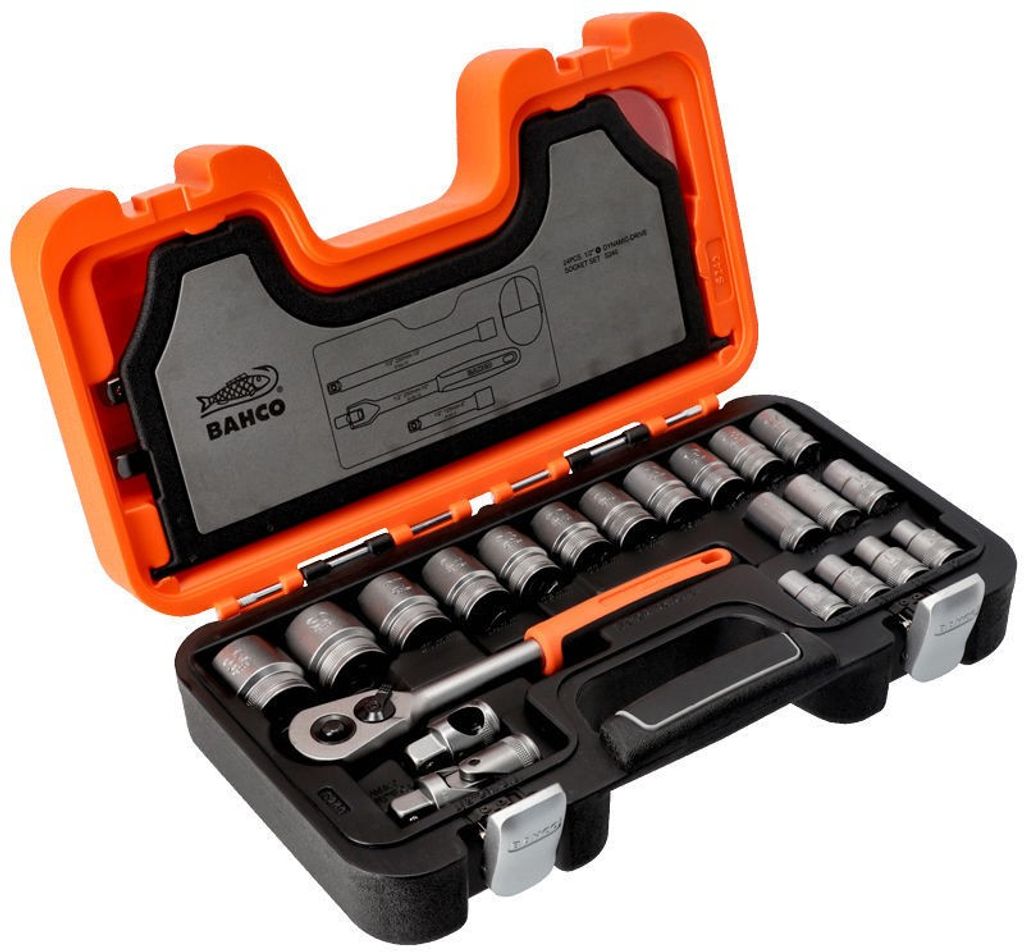 Bahco S240 är en robust hylsnyckelsats i mattförkromat högkvalitativt stål. Med 24 delar, inklusive Dynamic Drive-hylsor och ergonomiska handtag, erbjuder detta kit precision och hållbarhet för alla typer av projekt.