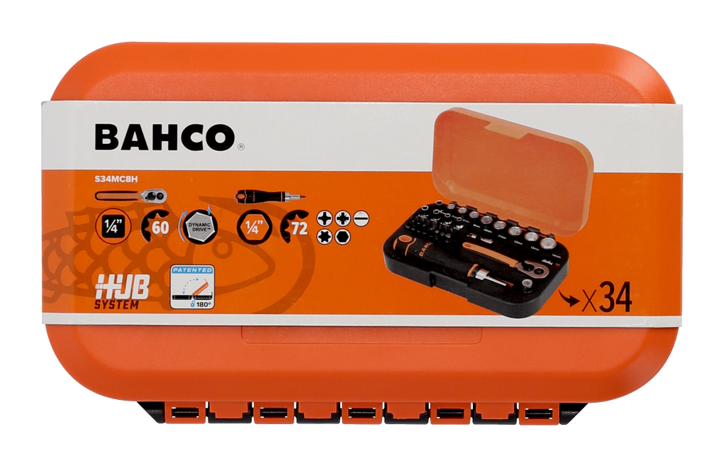 Bahco S34MC8H Hyls-/bitssats 1/4" - 34 delar