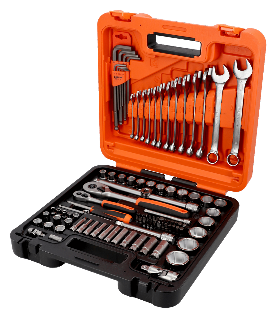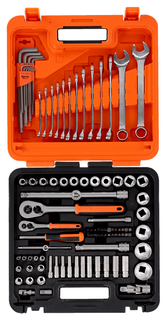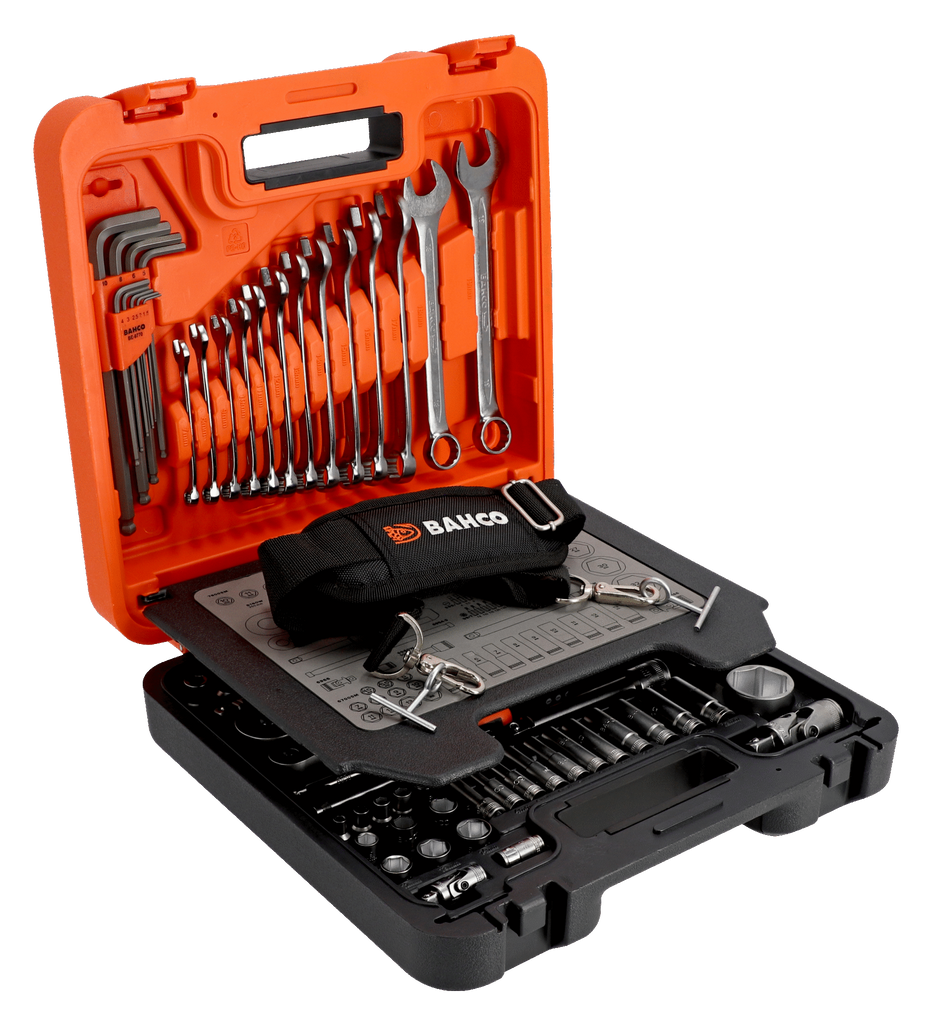 Bahco S98MC1H är en komplett hylsnyckelsats med 98 delar för proffs och krävande hemmafixare. Du får 1/4 och 1/2 drivare, metriska sexkantshylsor i både standard och långa utföranden, insexnycklar och u ringnycklar. Dynamic-Drive™ profil ger säkert grepp och minskat slitage, medan nya HDPE lådan gör transport och förvaring enkel och tålig.