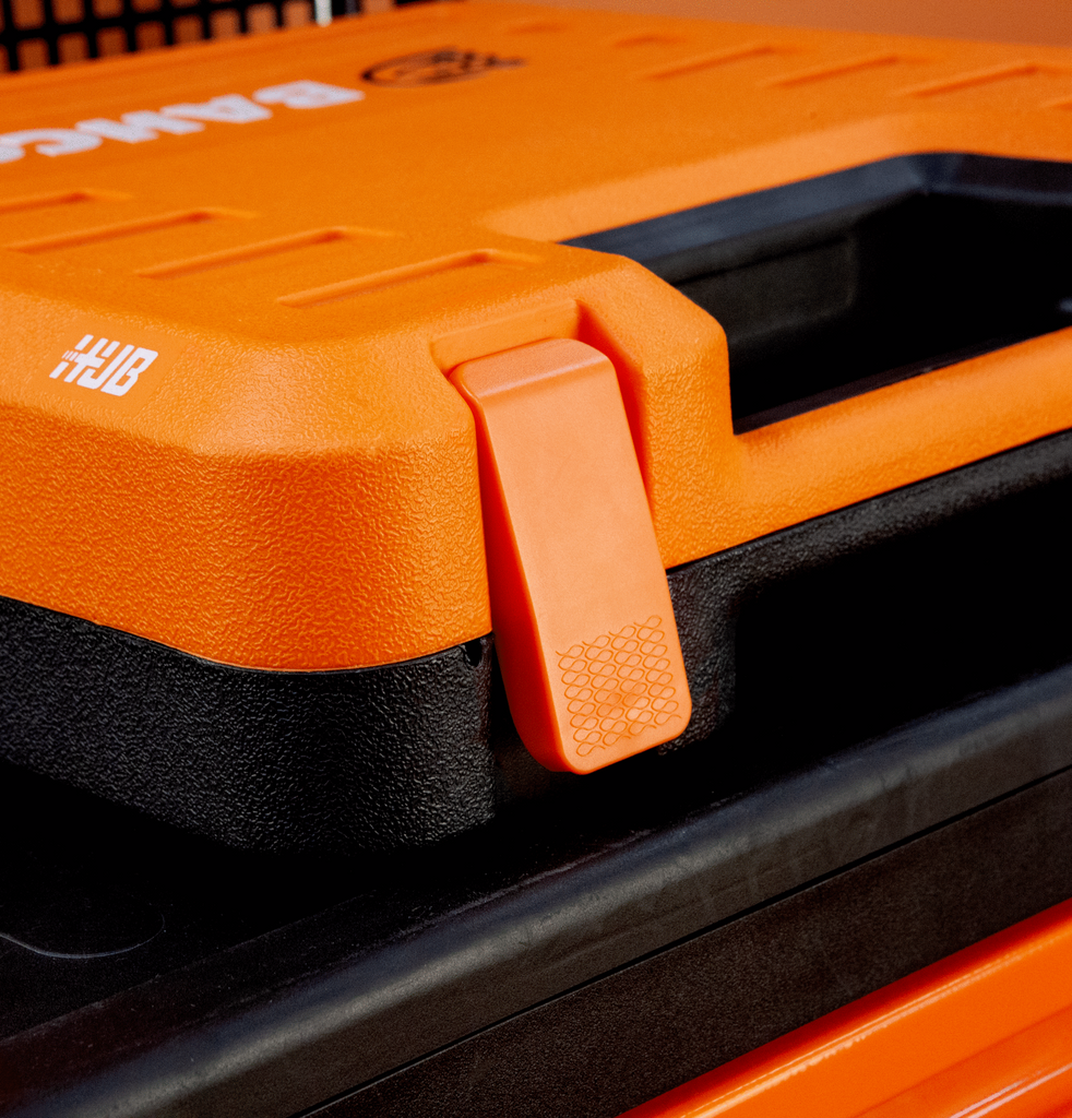 Den robusta förvaringslådan S98MC1H BOX i HDPE har ny design med smidiga lås, fästen och axelrem för enkel transport. Lådavdelaren kan användas som knäunderlag och det finns ytor för märkning med namn på fram och sida. Standarder enligt ISO 1174 och DIN 3120 ger trygg kompatibilitet med befintliga verktyg och utrustning.
