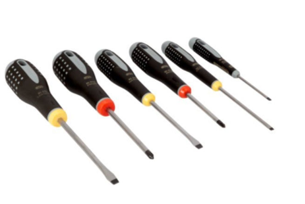 Bahco skruvmejselsats ERGO™ med sex skruvmejslar utvecklade enligt en vetenskaplig ERGO™-process. Svartoxiderad spets för bästa precision. Trekomponentshandtag för bästa komfort med mjuk och räfflad yta för utmärkt grepp och hög kraftöverföring.