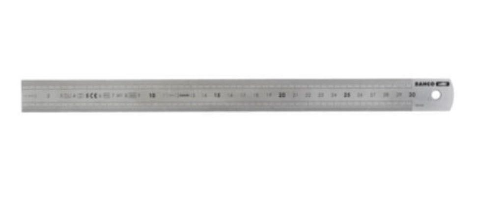 Bahco linjal av 2CR13 rostfritt stål. Metrisk version. Tydliga, svarta bokstäver på silvermetallbotten.