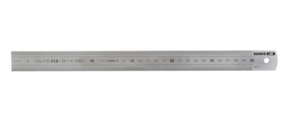 Bahco linjal av 2CR13 rostfritt stål. Metrisk version. Tydliga, svarta bokstäver på silvermetallbotten.