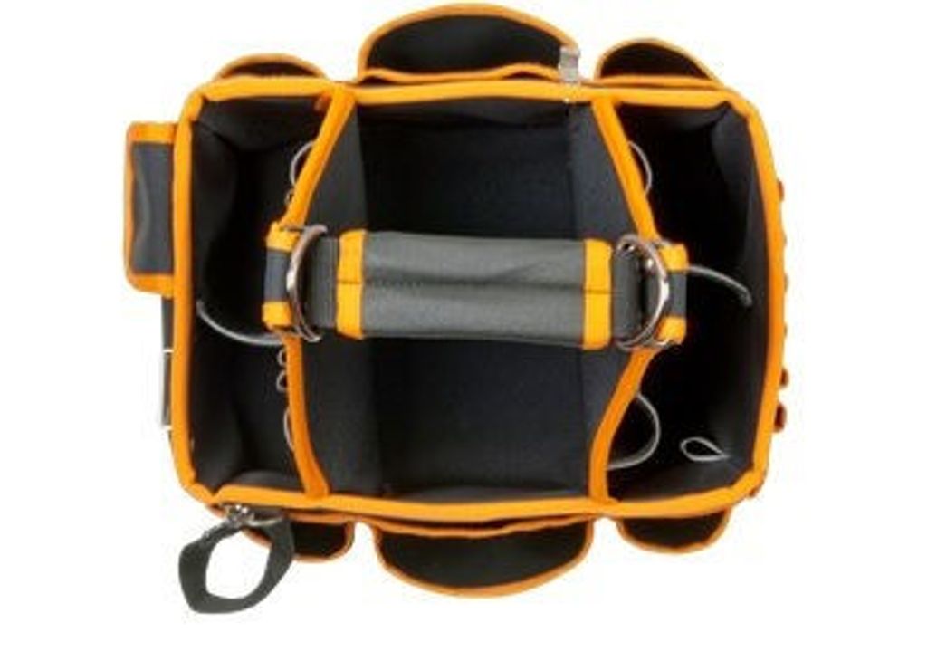 Väskan är isolerande, vilket gör den säker att använda i elektriska miljöer, och den är lätt att rengöra tack vare en botten av polypropen (PP). För extra bekvämlighet har den en justerbar och vadderad axelrem, samt hållare för måttband, kort och telefon.
