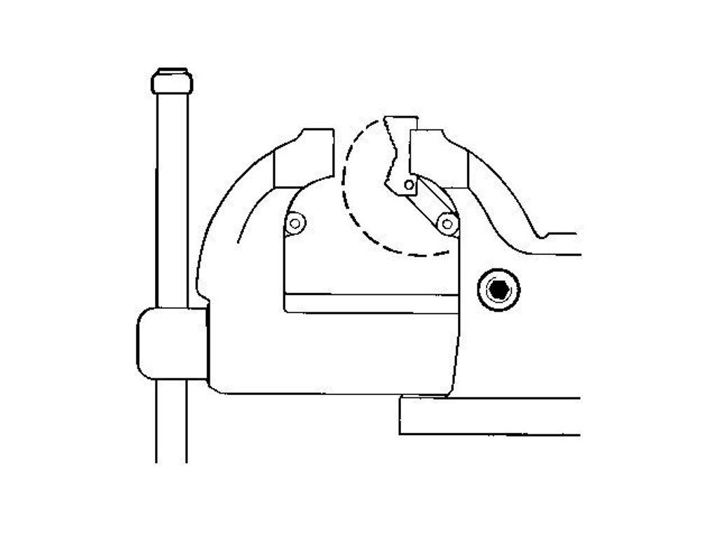 Peddinghaus Typ Matador. Sänksmidda av stål. Med mätskala och stort städ. Slipad, helt inkapslad spindel med dubbel trapetsgänga. Sliden är eftersättbar - gäller ej 100 mm. Dimensionerna 120-180 mm är försedda med hylsa under käftarna för snabb montering av nedanstående fällbara backar.