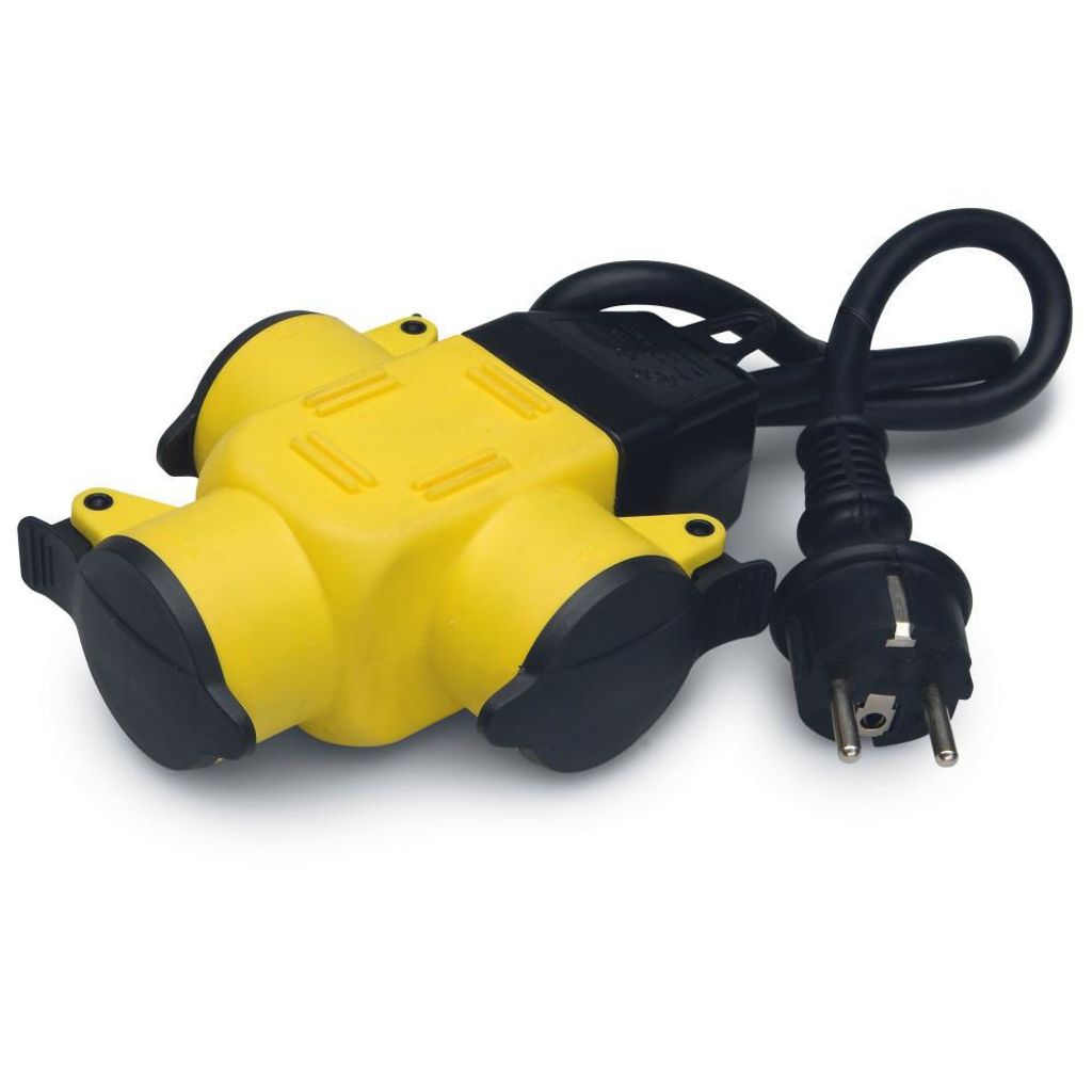 Jordat trevägs grenuttag. Grenuttaget är försett med självstängande lock. Kapslingsklass IP44.