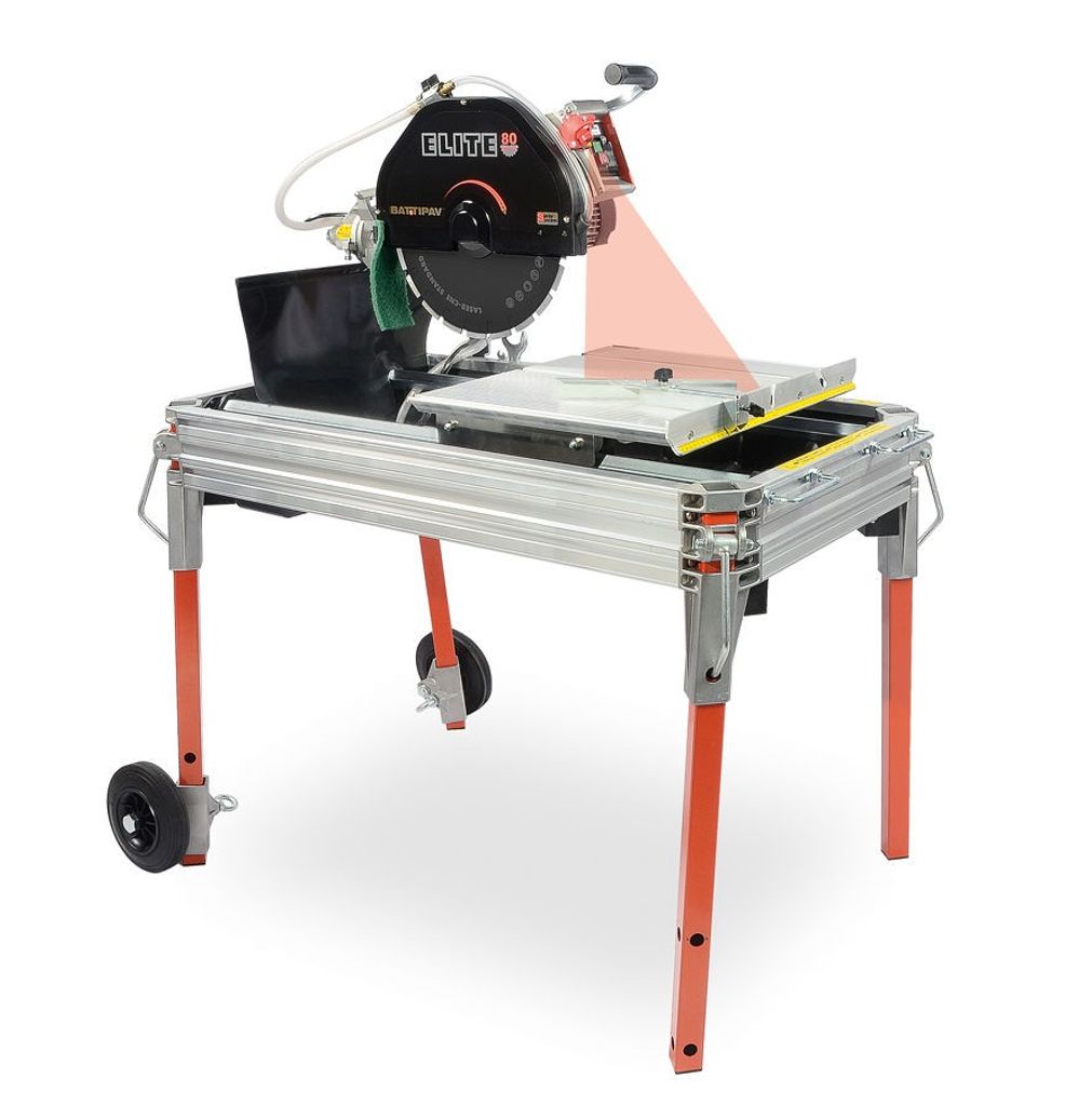 Battipav Elite 80S är en effektiv vattenkyld diamantsåg. 2200 W. För t.ex. tegel, betongplattor, marksten, granit, marmor etc. Jollykapning genom vinkling av motorn. Höj och sänkbar motor/klinga. Kullagrat sågbord. Chassi och bord i aluminium. Integrerad benställning med hjul. Laser för maximal precision.
