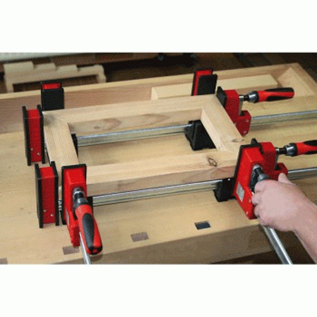 Besseys Rampress KP är en variabel rampress (från 30 cm upp till 250 cm) med fyra 90°-vinklar. Spänntrycket kan ställas in separat med 2 inlagda tvingar per hörn. Lätt vikt / enkel montering