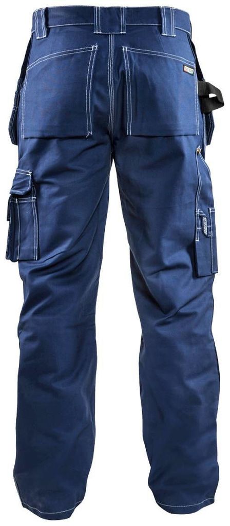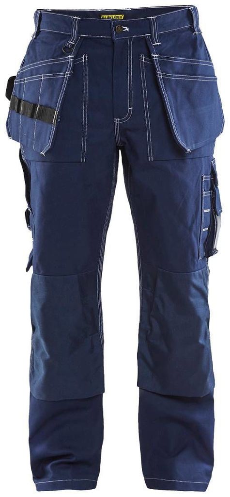 Blåkläder byxa 15301370 med två förstärkta lösa spikfickor, kan stoppas i de bälgade framfickorna. Två bakfickor med bälg. Hammarhank. Kraftigt metallblixtlås. Förstärkt tumstocksficka med pennficka och knivhållare.