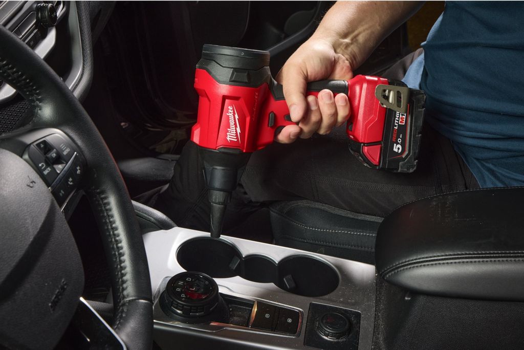 Rengöring av byggarbetsplats, verkstad och servicebil. Avblåsning av damm från elverktyg, filter, elektronik och skåp. Uppblåsning av tillbehör och utrustning med medföljande munstycke. Perfekt för snickare, montörer, servicetekniker och industriellt underhåll där snabb och sladdlös renblåsning behövs.