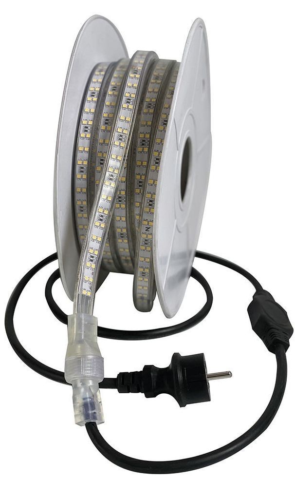 - LED slingan kopplas direkt till 230V uttaget, är energisnål och upprullad på en kabeltrumma i plast.