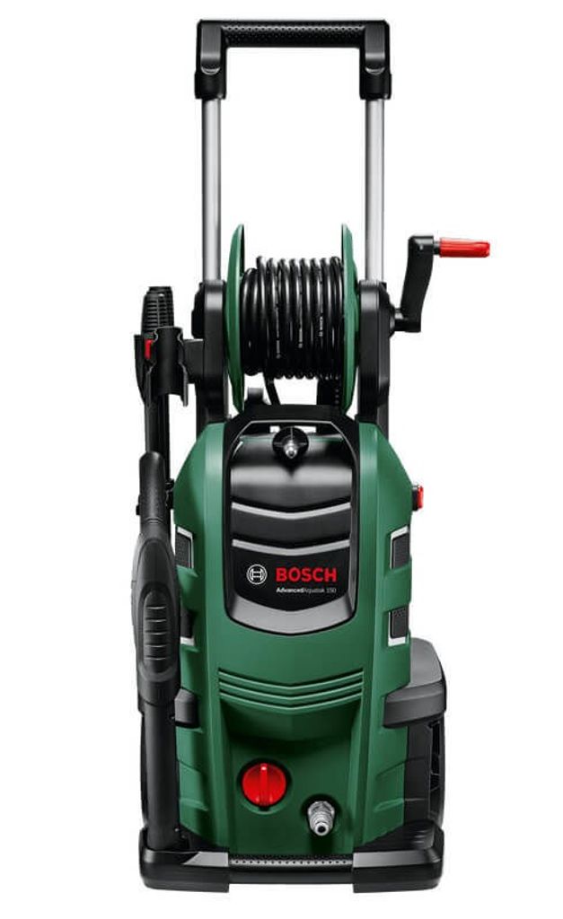 Bosch högtryckstvätt AQUATAK 150 QUAD är en kraftfull högtryckstvätt med ett tryck på upp till 150 bar. Högtryckstvätten jetstrålemunstycke, vidvinkelmunstycke, transporthjul, slangvinda mm. Bosch högtryckstvätt levereras komplett med slang, munstycken, vattelfilter, lans.