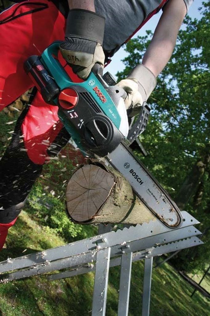 Sågen är utrustad med Bosch SDS-system som gör kedjespänningen helt verktygslös, och ett transparent oljefönster hjälper dig hålla koll på oljenivån. Med automatisk kedjesmörjning och ett svärd på 30 cm är det enkelt att hålla både prestanda och säkerhet på topp. Det dubbla bromssystemet med både Quick Stop och kickbackskydd stoppar kedjan direkt vid oväntade rörelser.