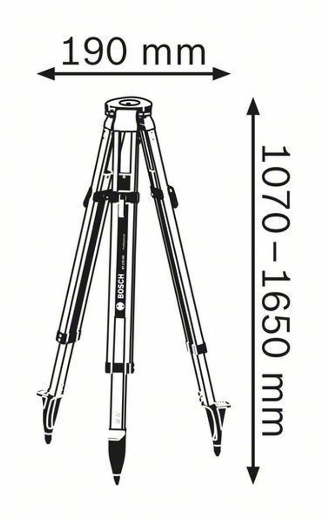 Bosch BT 170 HD är ett robust byggstativ i aluminiumutförande, mycket stabilt på alla underlag
