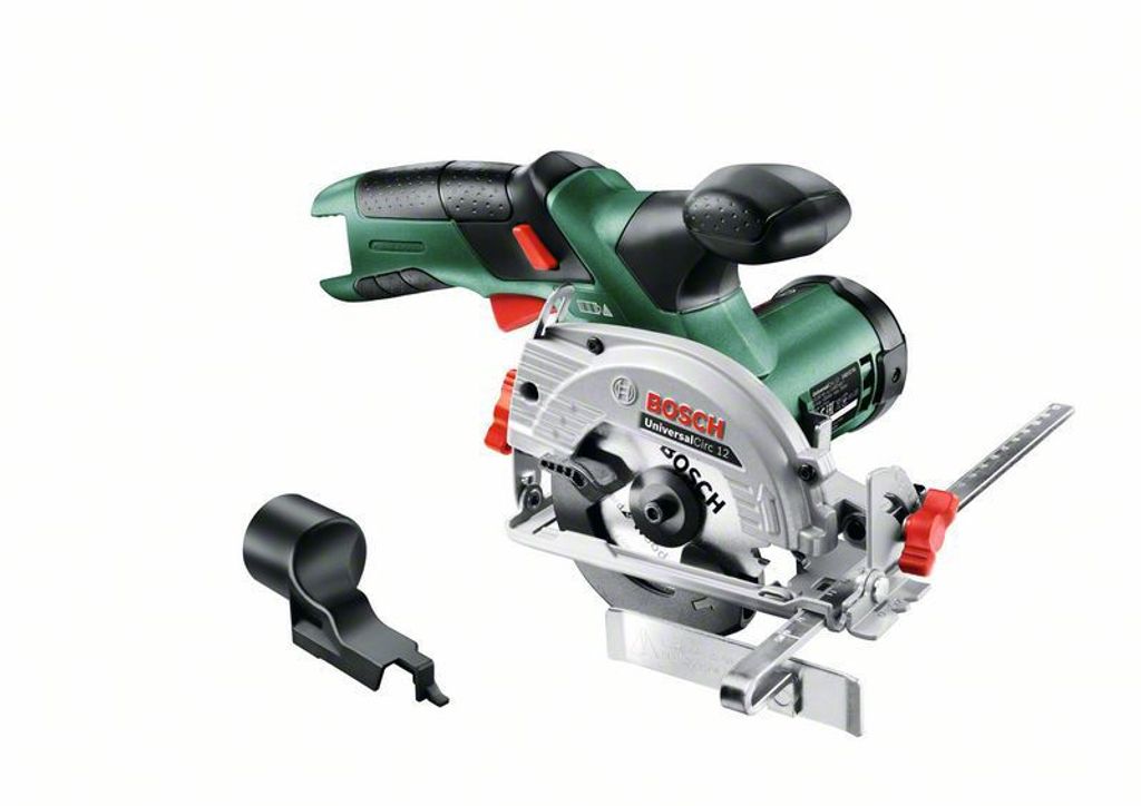Bosch cirkelsåg UniversalCirc 12 - sladdlös mobilitet, enkel sågning och precisa, raka kapningar. Styrskenan ger assistans för raka kapningar i trämaterial.