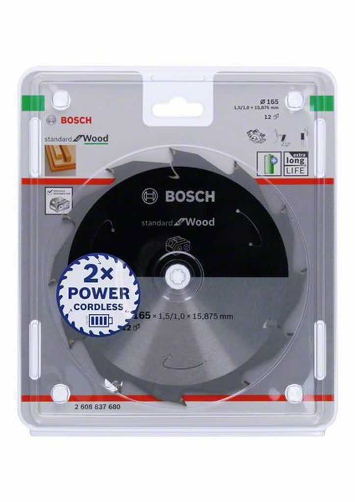 Bosch 165mm Standard for Wood cirkelsågklinga för sladdlösa sågar och torrsågar maximerar batteritiden.