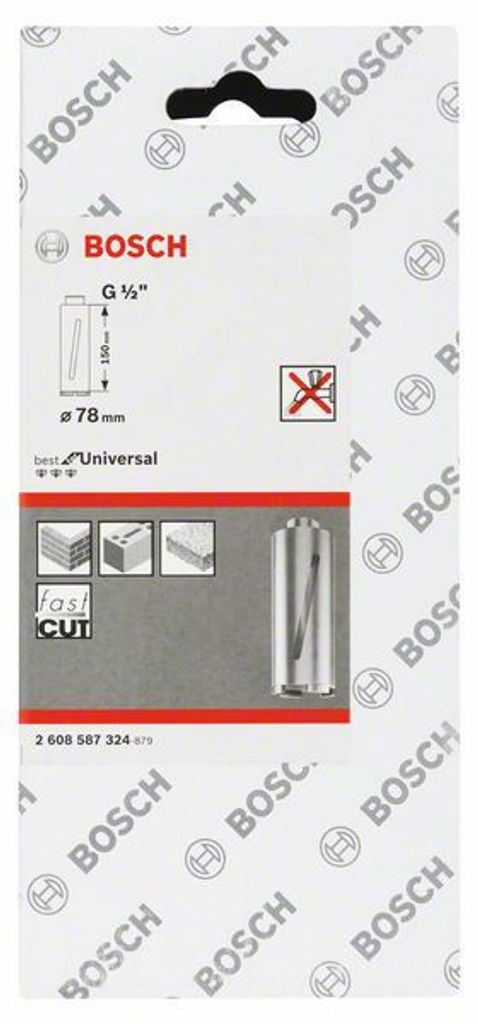Bosch Best for Universal diamantborrkrona för torrborrning ger utmärkt resultat vid torrborrning i murbruk i samband med en rad olika arbeten, exempelvis vid installation av eluttag i murbruk. Den optimerade segmentmatrisen garanterar hög borrningshastighet.