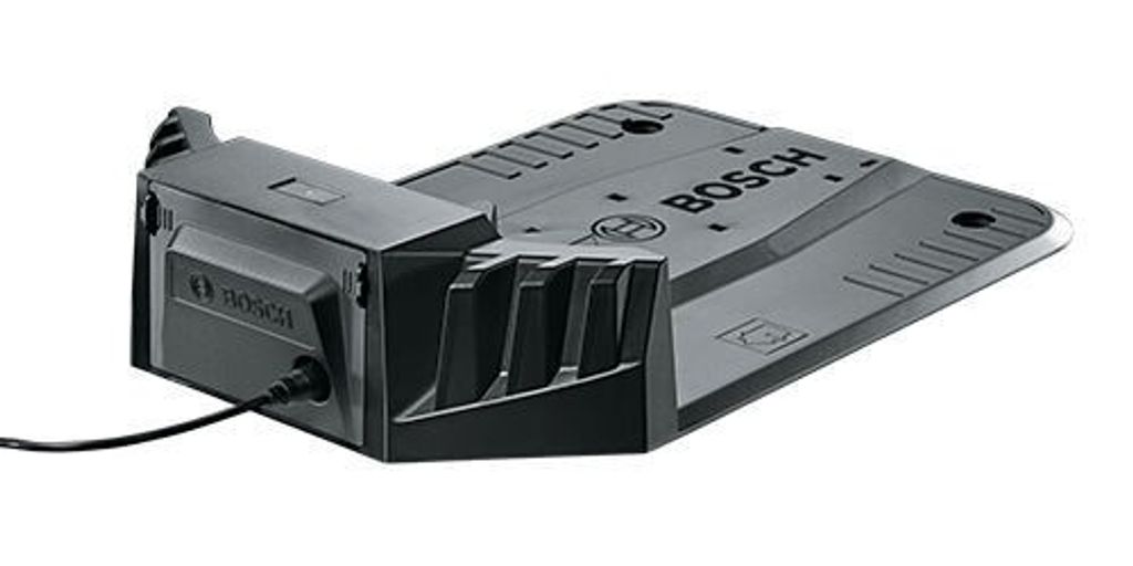 Bosch dockningsstation för robotgräsklippare Indego. Indego kartlägger, sparar och numrerar trädgårdarna. Den kommer även ihåg var den behöver klippa, om den flyttas mellan trädgårdar.
