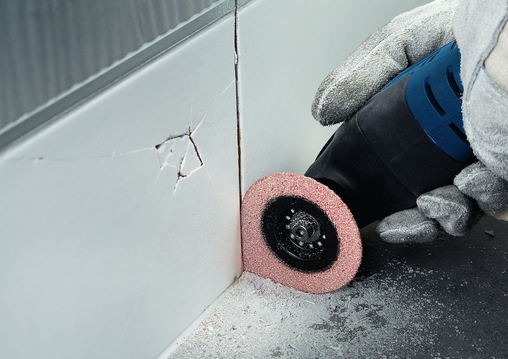 Flera användningsområden inom plattsättning - Tack vare den unika droppformen kan Expert 3 max utföra tre olika jobb inom kakelreparation, vilket möjliggör smidigt arbete och ger valuta för pengarna. Hårdmetallkornen av hög kvalitet kan enkelt skära bort fogen runt en kakelplatta – och når in även i de minsta hörnen tack vare den spetsiga formen. Expert 3 max fungerar sedan också som en slipplatta och används för att ta bort det gamla murbruket under plattan. Starlock-fäste för maximal kraftöverföring och smidiga bladbyten på tre sekunder.