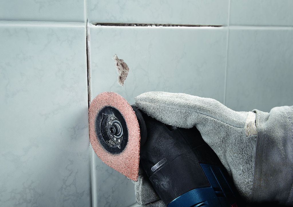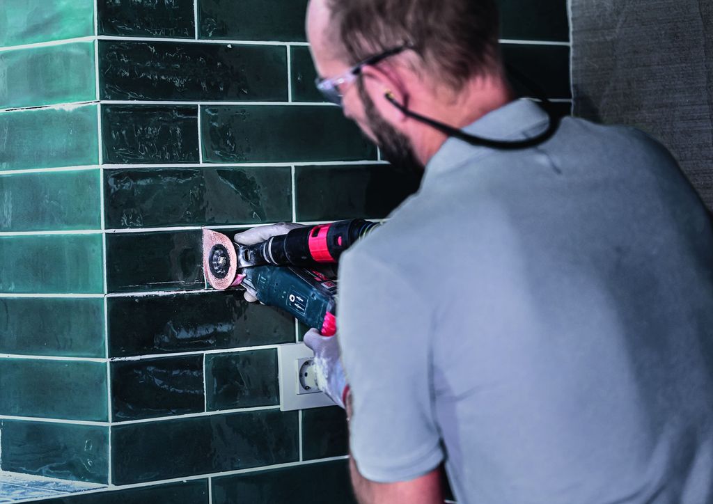 Perfekt för att ta bort skadade kakel och klinker: 3 max kan användas för att skära bort kakelfog – även i hörnen – och även till att slipa bort murbruk under den gamla plattan efter att den har tagits bort.