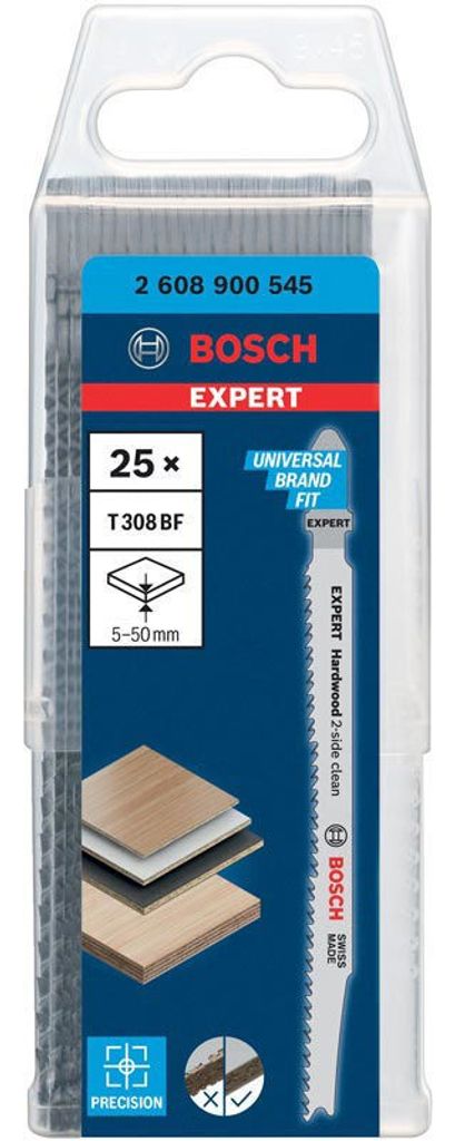 Bosch Expert ‘Hardwood 2-side clean’ T 308 BF sticksågblad, 25 st för Plastbelagda skivor, Multiplexskiva