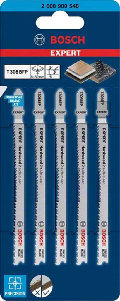 Bosch Expert ‘Hardwood 2-side clean’ T 308 BFP sticksågblad, 5 st