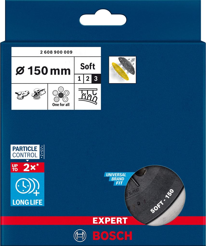 Ger slippapper lång livslängd - Expert multihål stödrondell är en integrerad del av Boschs Particle Control-system. De till synes slumpmässigt placerade hålen är resultatet av noggrann forskning: Det är matematiskt uträknat att tillräckligt många hål alltid hamnar i linje med pappret för att säkerställa optimal dammutsugning. Det betyder att dina slippapper inte täpps igen och håller längre. Den finns i hårda, medelhårda och mjuka versioner, beroende på vilken typ av slipning du ska utföra. 150 mm stödrondell till Bosch excenterslipar.